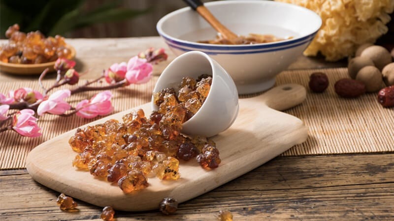 Đây là nhựa tự nhiên do cây đào tiết ra cũng là một loại yến sào tự nhiên. Trong nhựa đào có nhiều protein, hầu hết các thành phần mô trong cơ thể con người đều được cấu tạo từ protein. Sử dụng nhựa đào đều đặn có thể thúc đẩy quá trình tổng hợp một số chất protein trong cơ thể. Vì vậy có tác dụng tăng cường sức đề kháng nhất định.