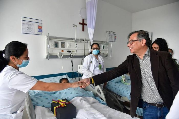 Tổng thống Colombia - ông Gustavo Petro đến thăm 4 đứa trẻ sống sót sau 40 ngày bị lạc trong rừng Amazon. Ảnh: AP