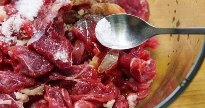 Đối với thịt ḅ dai, trước khi xào nên ngâm vào nước baking soda vài phút. Sau đó vớt ra để ráo rồi xào, thịt sẽ trở lên mềm và ngon hơn.