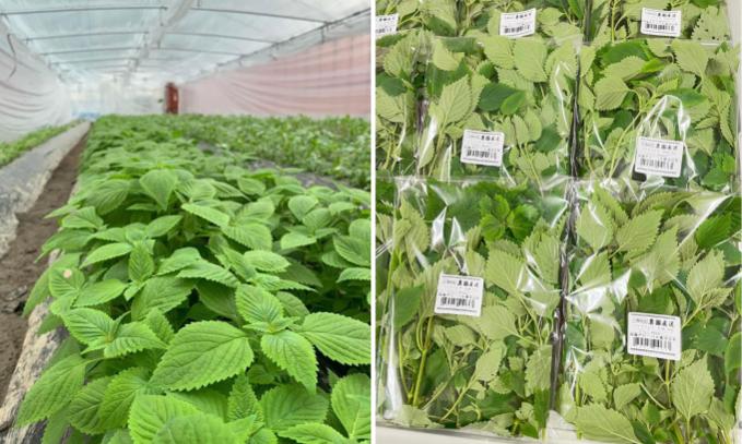 Rau kinh giới và thành phẩm bày bán của Utsumi và Nguyễn Trang Dung ở Osaka. Ảnh: Facebook/Sho-Kyu Tiệm Vây Cá