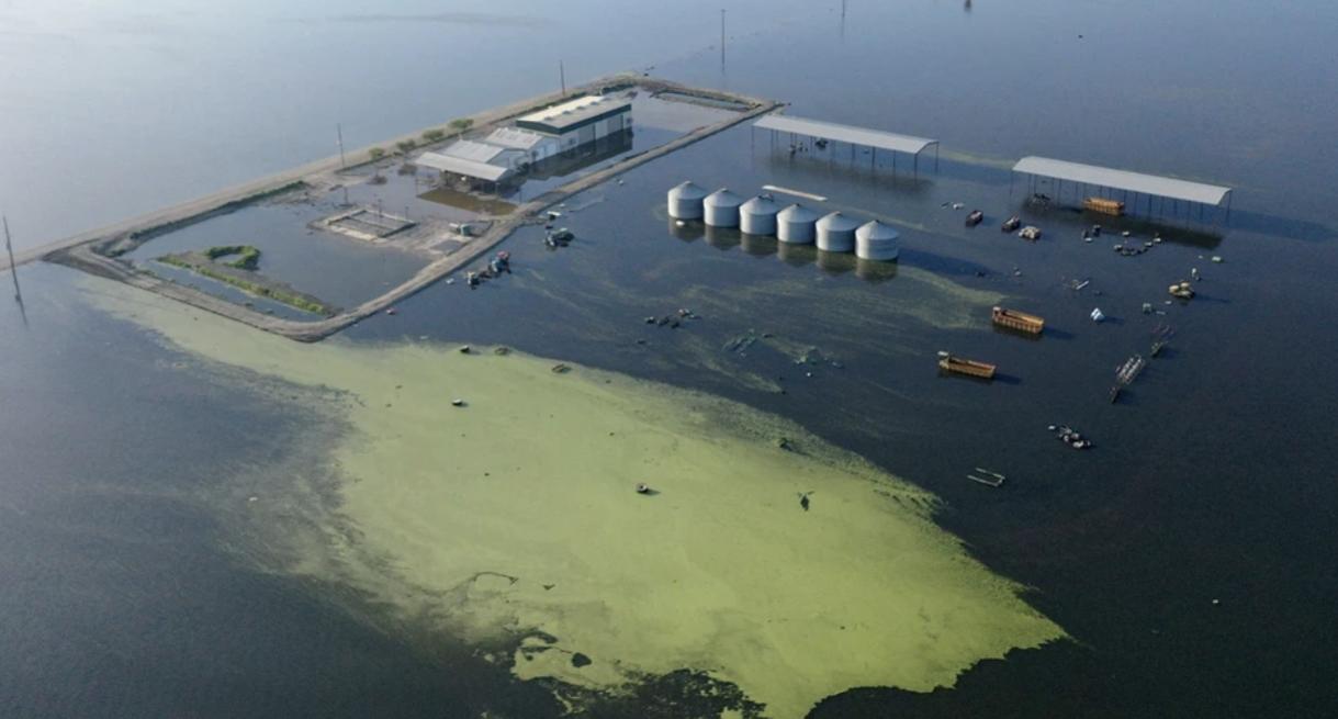 Tuy nhiên, sự tàn phá mà những cơn bão đã gây ra cũng vẫn có thể được nhìn thấy khi nhìn xuống dưới mặt hồ.