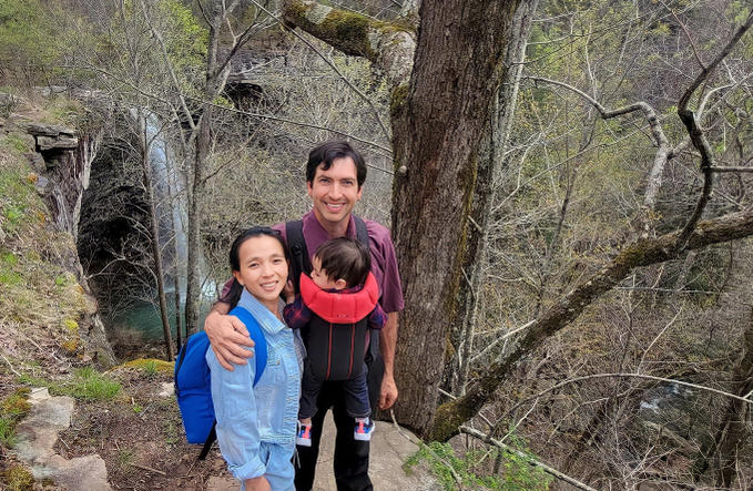 Cặp vợ chồng và con trai hiking ở gần nhà, tại thị trấn Crossville, bang Tennessee.