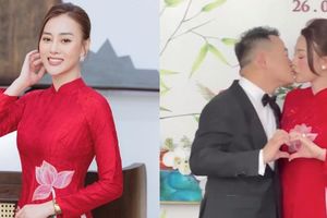 Trong ngày trọng đại, Phương Oanh diện bộ áo dài đỏ thêu hoa sen thủ công, trang điểm tự nhiên. Cô chuẩn bị thêm áo dài lụa trắng thêu chữ Song Hỷ trước ngực cho lúc đón dâu và bộ xanh bạc hà khi đăi tiệc.