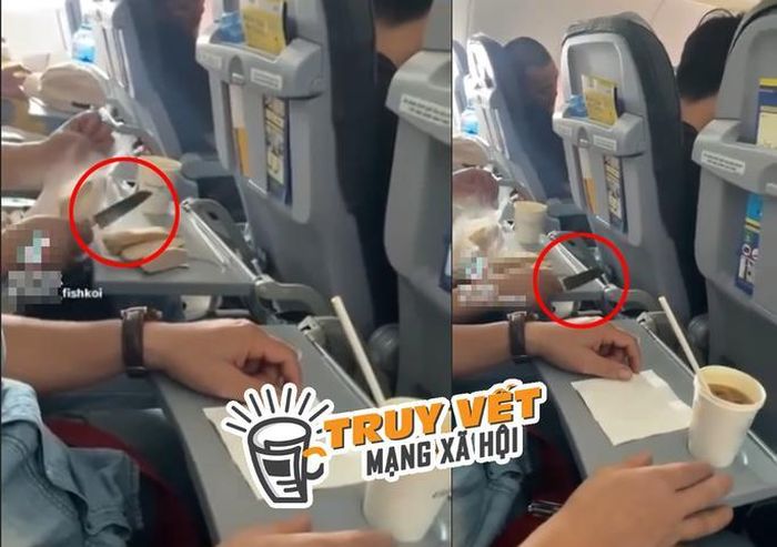 Đoạn clip lan truyền trên mạng xã hội cho thấy một hành khách đang vô tư dùng dao gọt trái cây trên máy bay dù hành vi này bị cấm