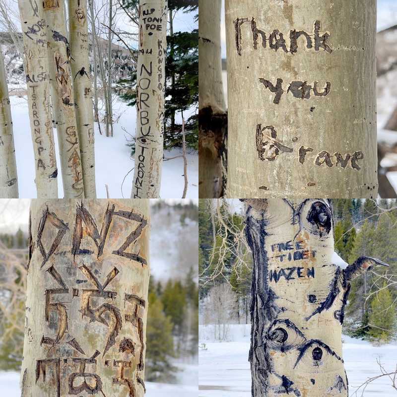 Chiến binh đến từ Tây Tạng khắc chữ lên thân cây Bạch Dương trong thời gian ở Trại Hale.