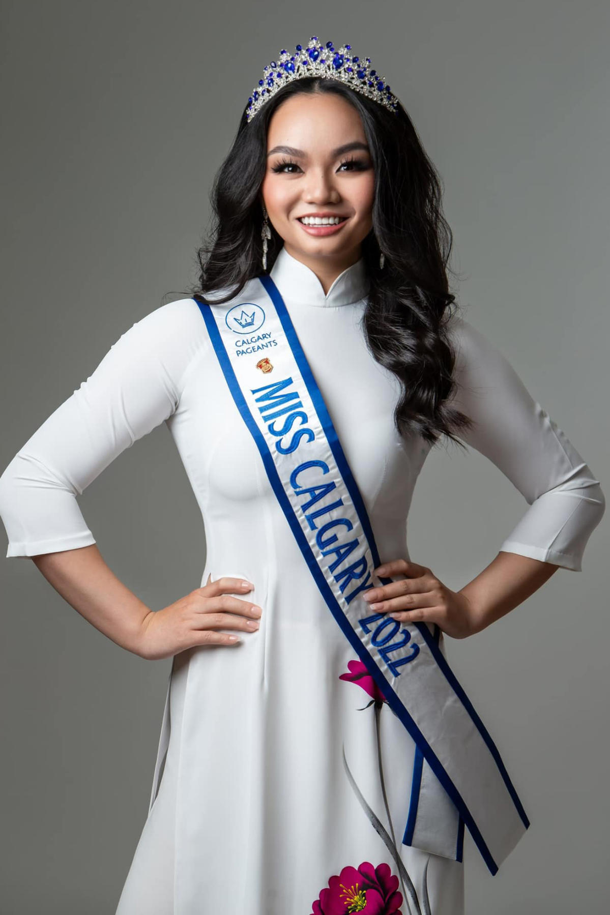 Cô mặc áo dài khi đăng quang Hoa hậu Calgary năm ngoái. Trong cuộc thi, người đẹp cho biết ước mơ của cô là được dạy tiếng Anh tại một trường đại học ở Việt Nam.