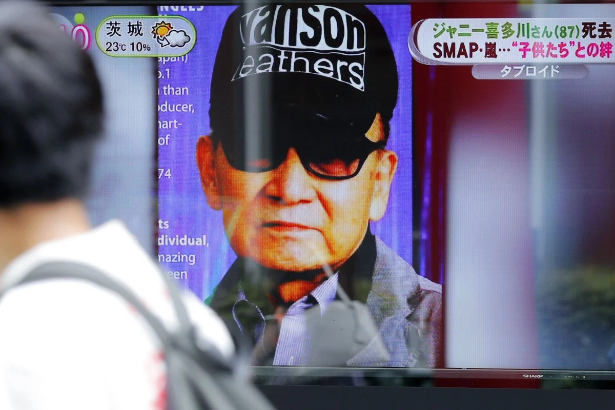 Thông báo về cái chết của Johnny Kitagawa, người sáng lập công ty đào tạo tài năng Johnny & Associates. Ảnh: AP