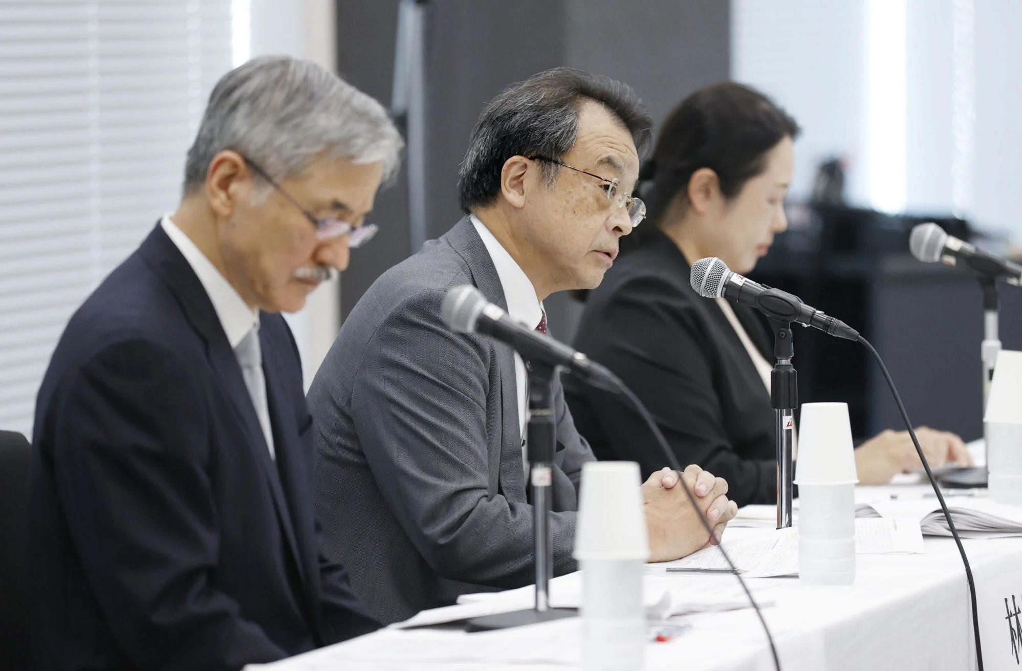 Ông Makoto Hayashi (giữa), trưởng nhóm điều tra phát biểu tại họp báo ở Tokyo hôm 29/8. Ảnh: Kyodo