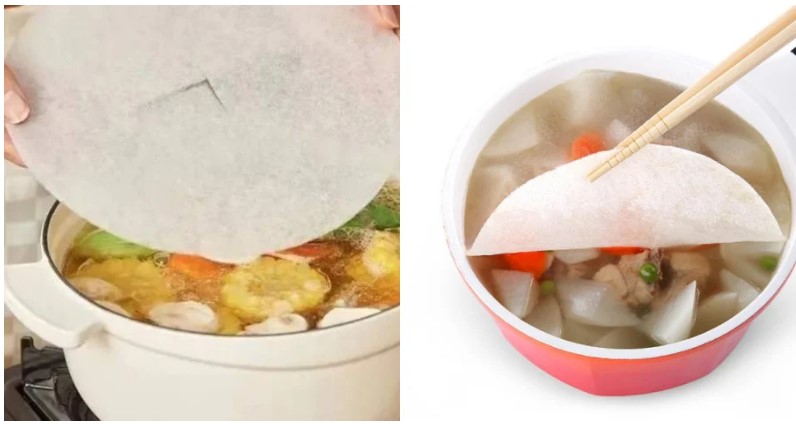 Mẹo vớt váng mỡ trong nồi canh bằng màng bọc thực phẩm