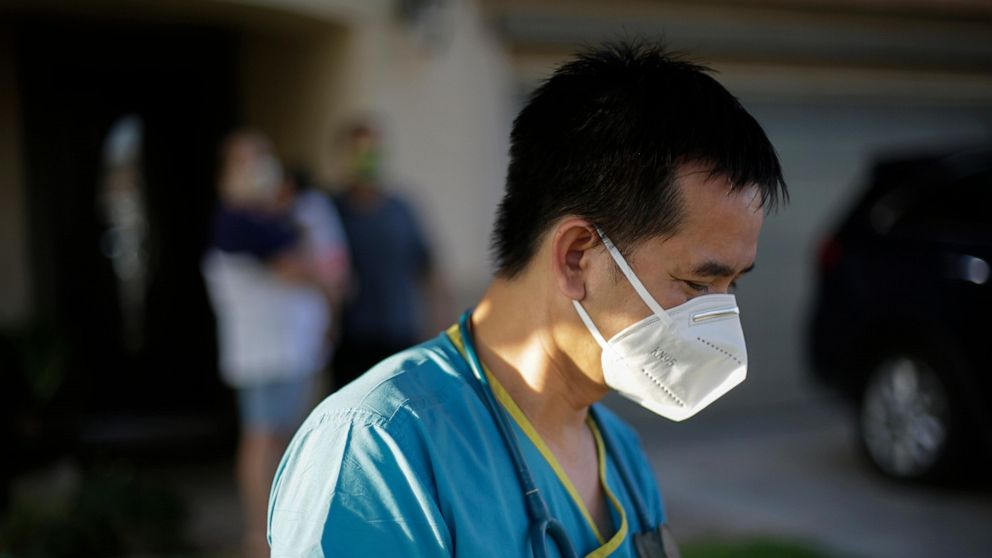 In this July 23, 2020, file photo, Dr. Tien Vo leaves after talking with a family quarantining after they tested positive for the coronavirus, in Calexico, Calif.