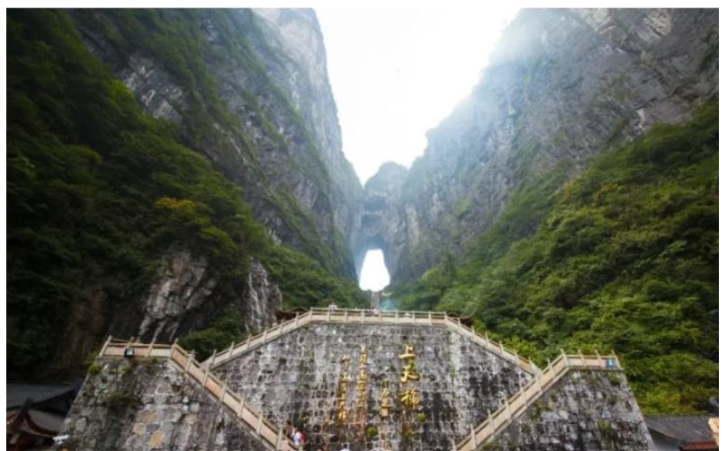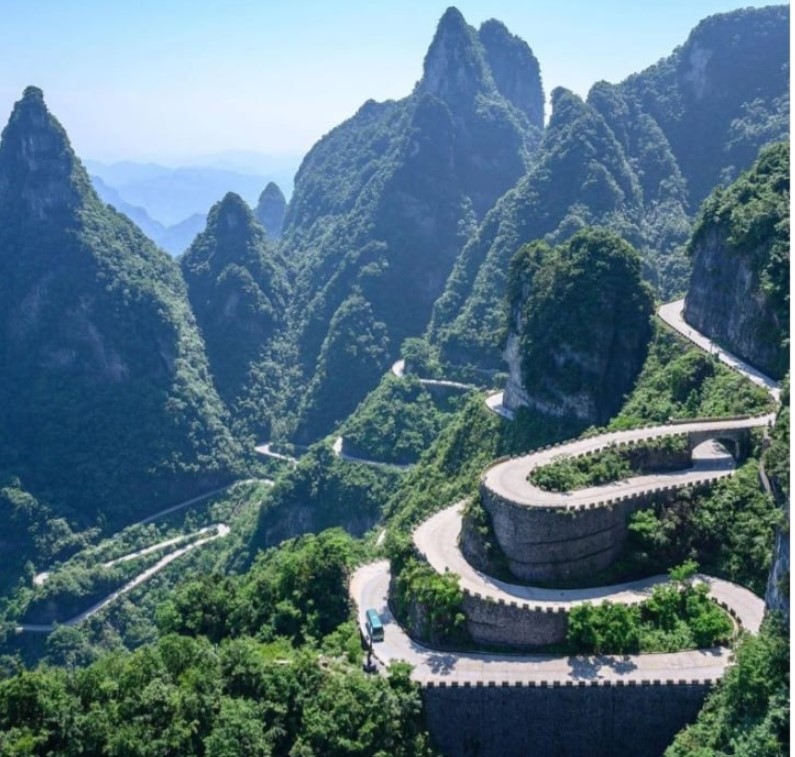 Một trong những đỉnh núi nổi tiếng ở Trung Quốc phải kể đến Thiên Môn Sơn - nơi có cung đường với 99 khúc cua hiểm trở dẫn tới điểm đích được gọi là "cổng trời".