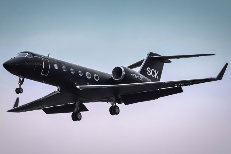 Chiếc máy bay riêng được phủ kín một màu đen mờ yêu thích của chủ nhân