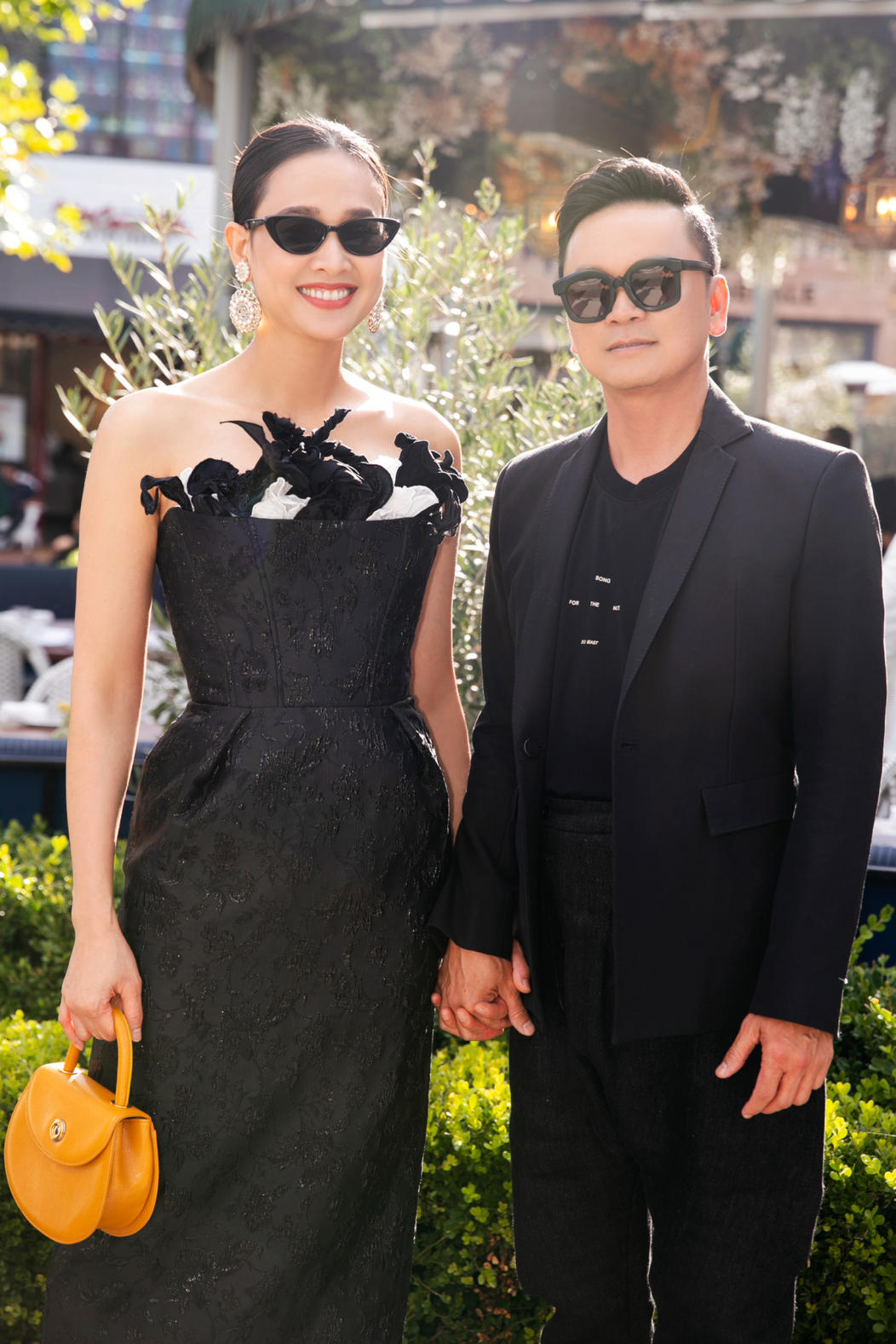 Hôm 28/9, Đỗ Mạnh Cường tổ chức buổi tiệc tại một nhà hàng ở bang California để tri ân 100 khách VIP. Tới sự kiện, vợ chồng Dương Mỹ Linh cùng diện đồ đen. Hoa hậu mặc thiết kế mới nhất của Sixdo, phần thân trên dựng phom corset, gắn hoa lụa.