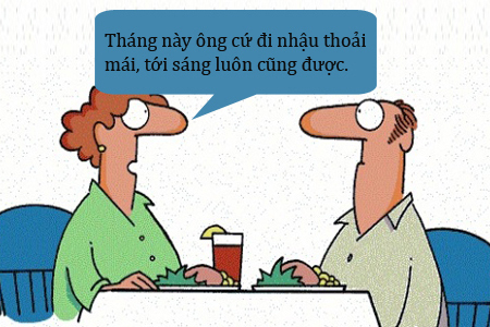 - Tháng này ông cứ đi nhậu thoải mái, tới sáng luôn cũng được.