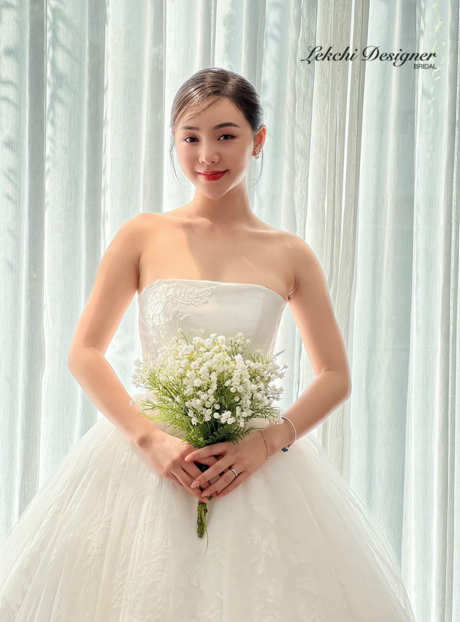 Cụ thể trên trang cá nhân nữ diễn viên khoe vẻ đẹp quyến rũ khi mặc váy cưới cúp ngực, cùng status là những dòng thơ “Hỡi em yêu/ Em mãi là vợ của anh/ Hỡi anh yêu/ Anh mãi là chồng của em/ Cuộc tình nên thơ/ Hạnh phúc bên đàn con/ Trong ngôi nhà nhỏ xinh/ Là hạnh phúc to to”.