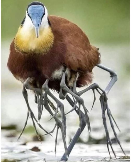 African jacana bird (gà lôi nước Châu Phi) đối với những ai chưa từng nhìn thấy, có thể sẽ hơi bối rối với hình ảnh nhìn thấy ngày hôm nay, cho dù đó thực sự là một con chim nhiều chân, hay nó là một con quái vật, một người ngoài hành tinh, hay một người dựng phim?