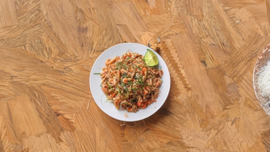 Nước cốt chanh và lá chanh giúp tôm thơm hơn.