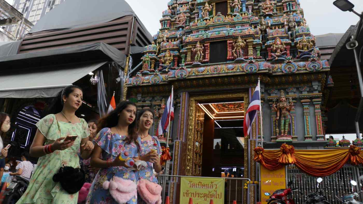 Ngôi đền Hindu Sri Maha Mariamman ở Bangkok đã nhộn nhịp vào ngày 12/11, du khách háo hức được chiêm ngưỡng công trình kiến trúc đầy màu sắc với các bức tượng của nhiều vị thần khác nhau.