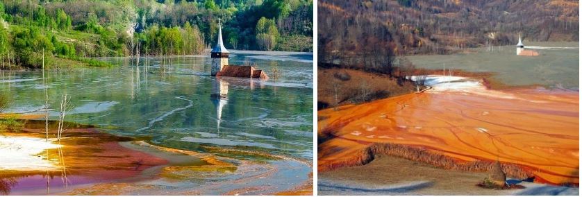 Hồ nước khổng lồ màu cam, đỏ, vàng khiến khung cảnh Geamana trở nên rực rỡ như buổi chiều tà. Với những người chưa biết sự thật, có lẽ phải thốt lên cảnh đẹp như tranh vẽ.