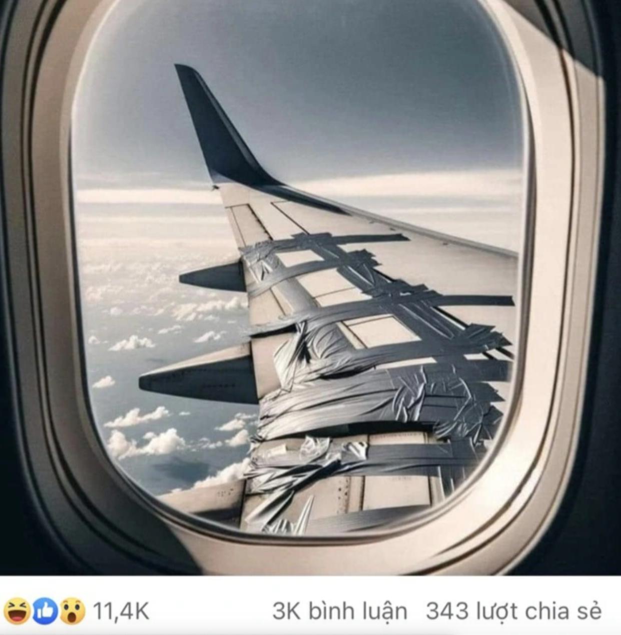 Theo tìm hiểu của Báo Người Lao Động, hình ảnh cánh máy bay dán băng keo lan truyền trên mạng không phải ở Việt Nam mà xuất phát từ một trang mạng của nước ngoài.