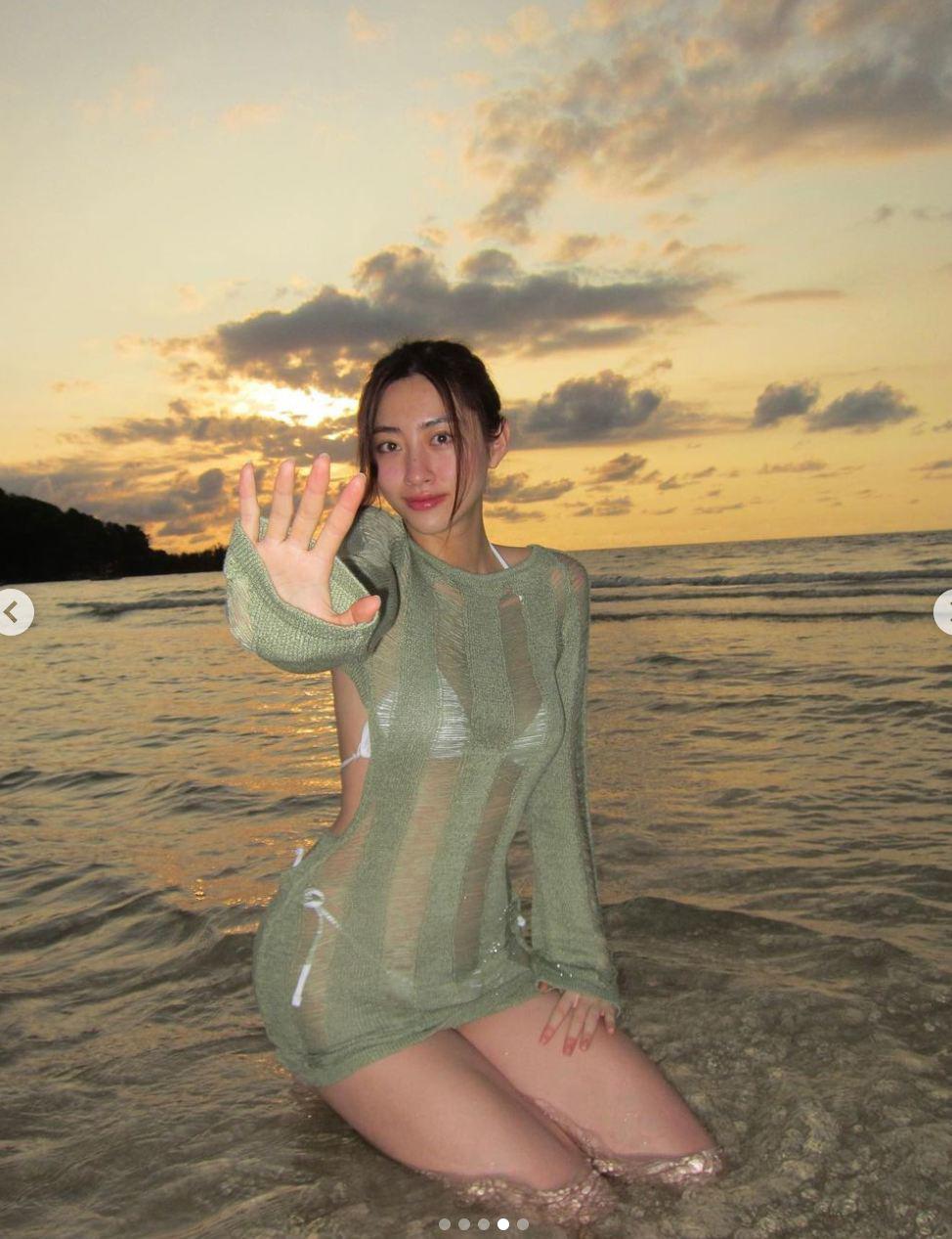 Thay vì chỉ mặc đơn điệu áo tắm thì Lương Thùy Linh thường mix cùng các kiểu áo ngoài, váy lưới mong manh trong suốt, độ che chắn có thể chẳng bao nhiêu nhưng về tổng thể ánh nhìn thì lại đẹp và sang hơn rất nhiều lần.