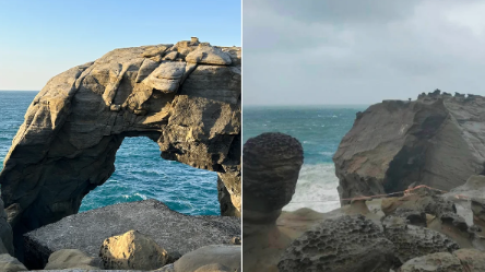 Ông Shen Chuan-chou, giáo sư Khoa Địa chất học tại Trường ĐH Đài Loan (Trung Quốc), trả lời phỏng vấn hãng tin CNA rằng việc khối đá sụp đổ là hoàn toàn tự nhiên vì sự ảnh hưởng liên tục của nước biển và gió. Đồng thời, hình dạng vòng cung mỏng khiến khối đá càng dễ bị mòn hơn.