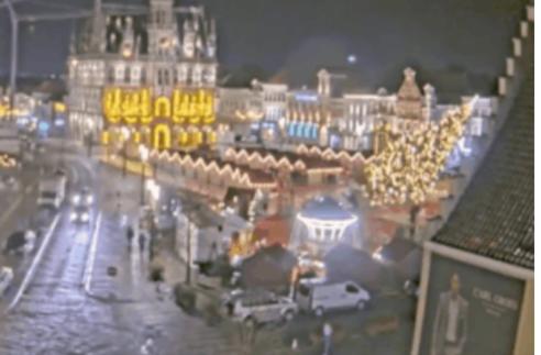 Đoạn phim camera an ninh được đăng tải trên các phương tiện truyền thông Bỉ cho thấy cây thông Giáng sinh cao 20 m với đèn trang trí sáng rực từ từ nghiêng qua, sau đó sụp đổ tại một khu chợ Giáng sinh ở thị trấn phía đông Brussels hôm 21/12 trong lúc vòng quay ngựa gỗ đang hoạt động tại quảng trường lịch sử.
