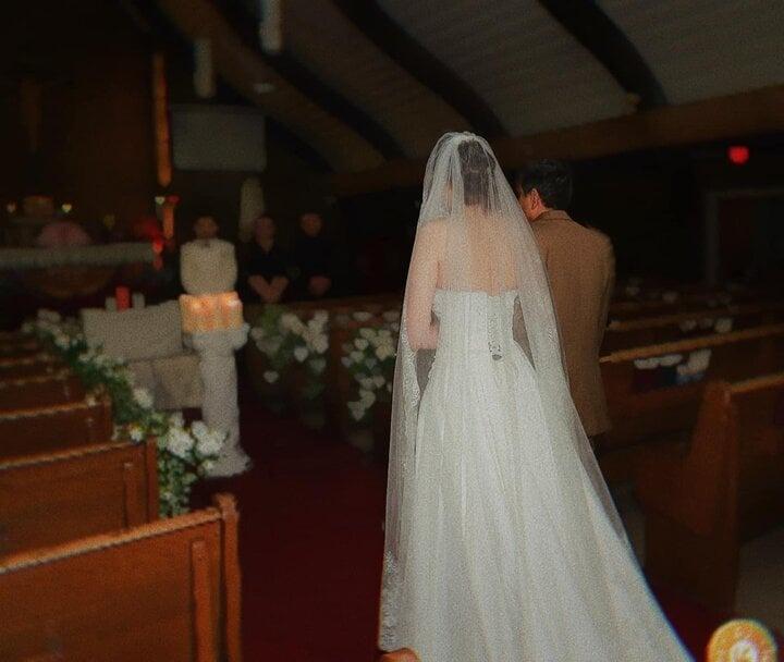 Khoảnh khắc bố Diễm Hương dắt tay con gái tiến vào lễ đường.
