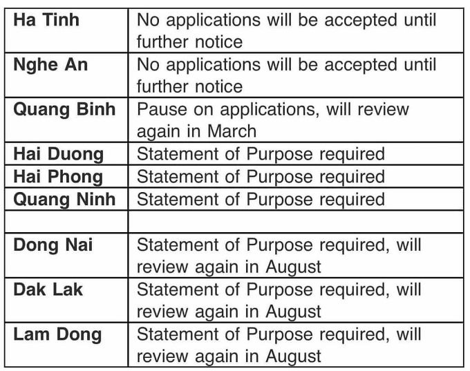 Ngoài ra, học sinh từ 6 tỉnh khác là Hải Dương, Hải Phòng, Quảng Ninh, Đồng Nai, Đăk Lăk, Lâm Đồng được yêu cầu giải trình rõ ràng về mục đích xin học, có kế hoạch du học cụ thể.