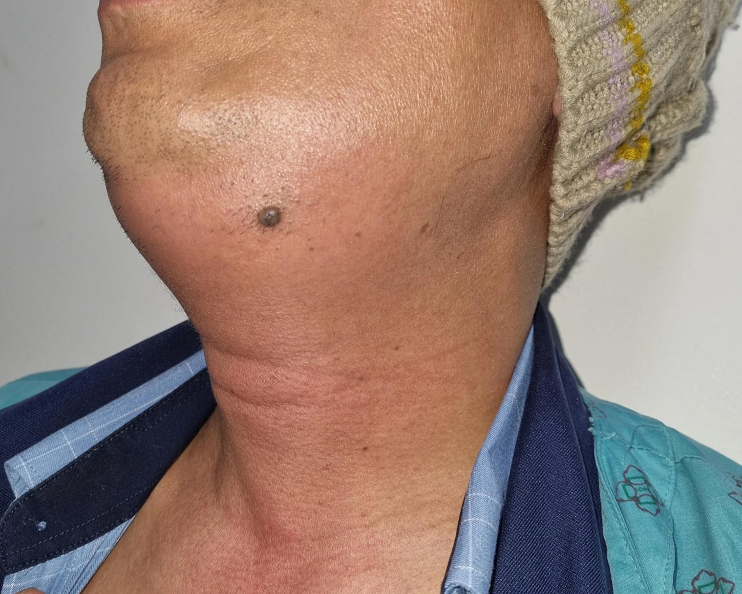 Bệnh nhân được sử dụng phối hợp 2 kháng sinh, thay băng vết mổ hàng ngày trong 10 ngày. Khi vết mổ sạch, vết thương dưới cằm được khâu lại và bệnh nhân dự kiến ra viện sau 5 ngày.