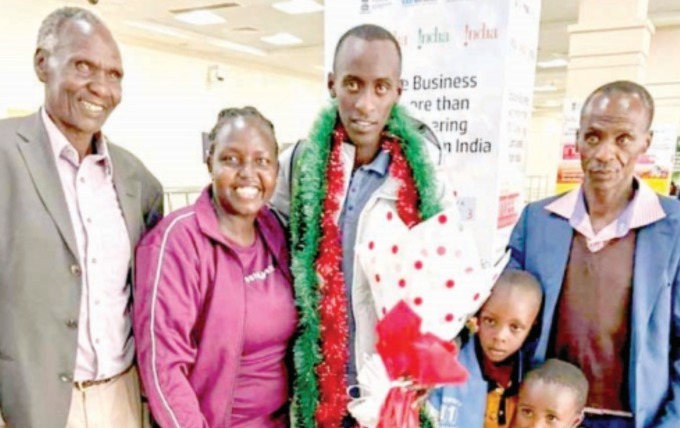 Kiptum chụp ảnh với gia đình lúc trở về sau khi lập kỷ lục thế giới ở Chicago Marathon hồi tháng 10/2023. Ảnh: People Daily