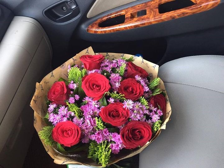 Sau khi lãnh giáo mấy đường chỉ dẫn của tôi, cậu tài xế khoái chí thực hành luôn. Nó rút điện thoại chụp bó hoa, gửi cho vợ và líu lo trên điện thoại: