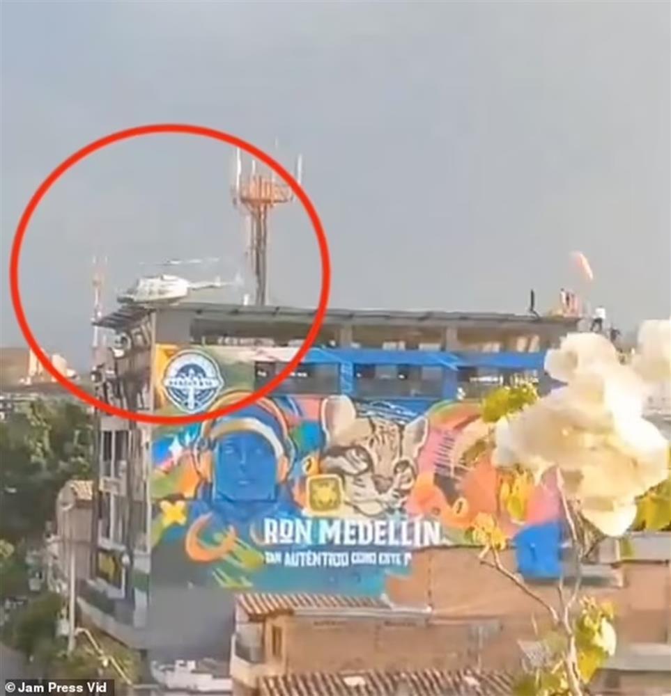 Trong đoạn video được tờ The Sun đăng tải cho thấy, một chiếc trực thăng cất cánh từ sân bay trực thăng của một nhà hàng ở thành phố sầm uất Medellín, Colombia thì ngay lập tức bắt đầu quay tròn trên không trung.