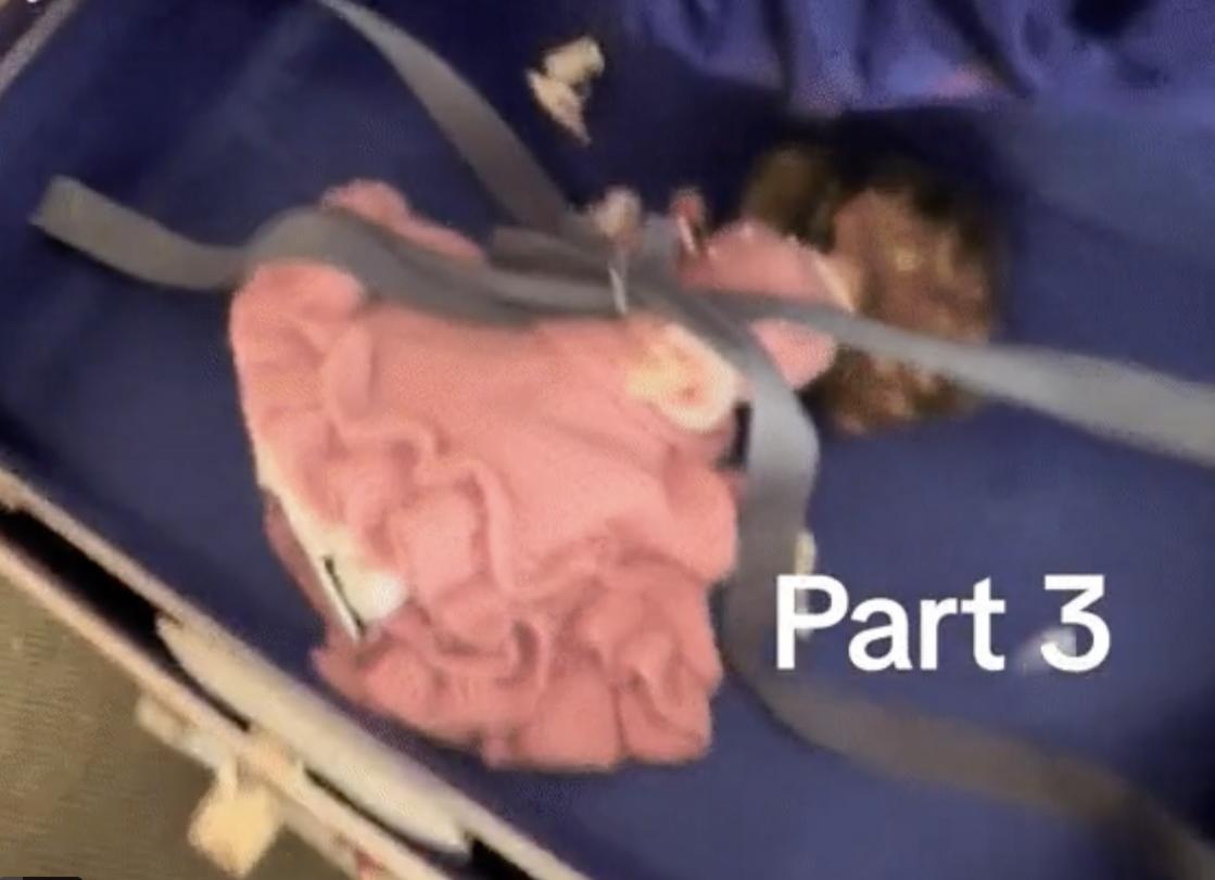 Mặc dù vậy, cảnh tượng khi chiếc vali được mở ra vẫn khiến không ít người cảm thấy rợn tóc gáy. Cặp đôi cho biết, khi mở vali ra, họ phát hiện một con búp bê kỳ lạ được buộc bên trong. Đáng chú ý, ngay sau đó, chú chó cưng của gia đình cũng bất ngờ chạy tới và có hành động vô cùng kỳ lạ.