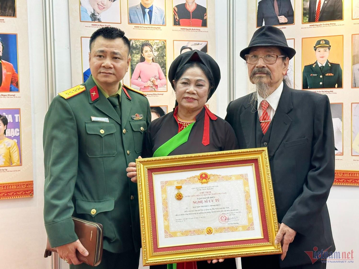 NSND Tự Long cùng bố đưa mẹ đi nhận danh hiệu NSƯT.