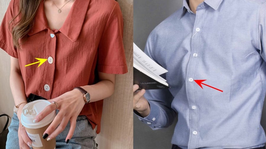 Nếu để ý kỹ, bạn có thể thấy hàng cúc ở áo sơ mi nam và áo sơ mi nữ sẽ được may ngược nhau. Tức là đối với áo sơ mi nam, cúc sẽ được khâu ở bên phải, trong khi đó cúc sẽ được may ở bên trái của áo sơ mi nữ.