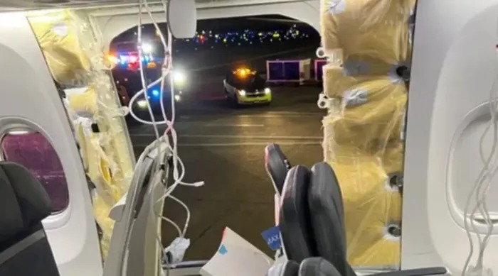 Ngày 5/1, máy bay Boeing 737 MAX 9 mang số hiệu 1282 của hãng hàng không Alaska Airlines khởi hành từ sân bay Portland, bang Oregon, đến Ontario, California. Chỉ 20 phút sau cất cánh, chiếc máy bay chở 177 người phải hạ cánh khẩn cấp. Lí do bởi một phần trên thân máy bay, nằm ở vị trí giữa cánh và đuôi, bật tung giữa trời khi máy bay đạt độ cao khoảng 4.800 m. Rất may tất cả hành khách và phi hành đoàn trên chuyến bay đều an toàn.