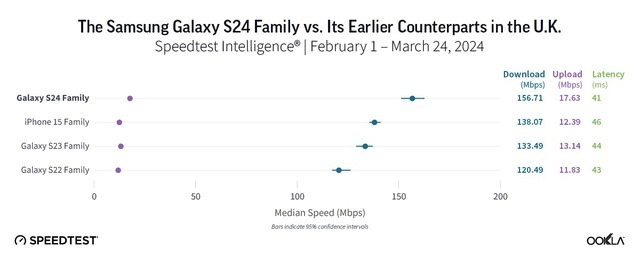 Tại Anh, Galaxy S24 có tốc độ trung bình nhanh hơn 18 Mbps:
