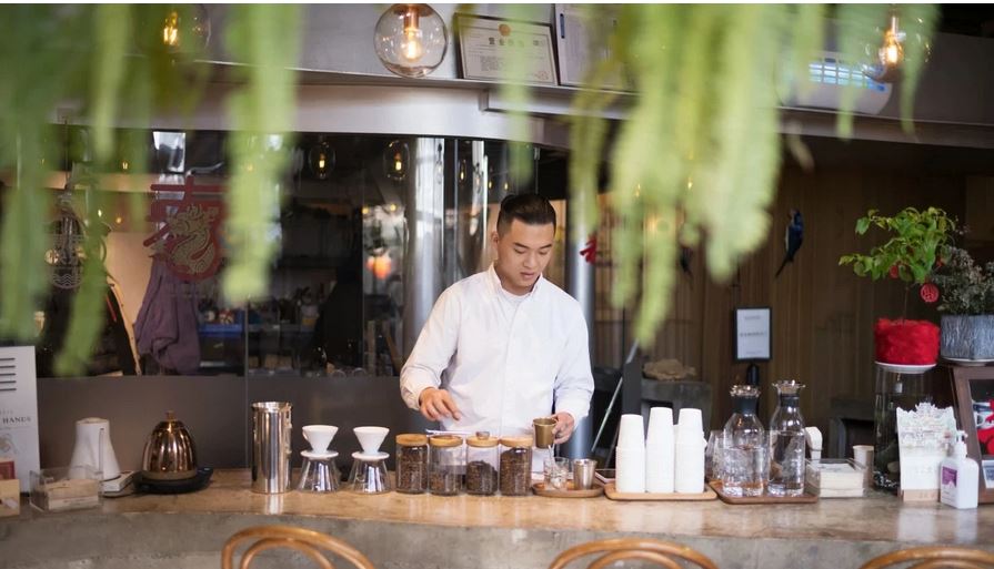 Barista chuẩn bị đồ uống tại quán cà phê Metal Hands ở Bắc Kinh. Ảnh: NBC News.