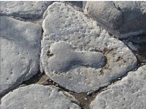 Hình chạm khắc hình dương vật trên con đường ở Pompeii, Ý chỉ đường vào nhà chứa