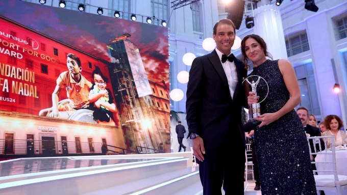 Nadal cùng vợ nhận giải Laureus cho Quỹ Rafael Nadal hôm qua.