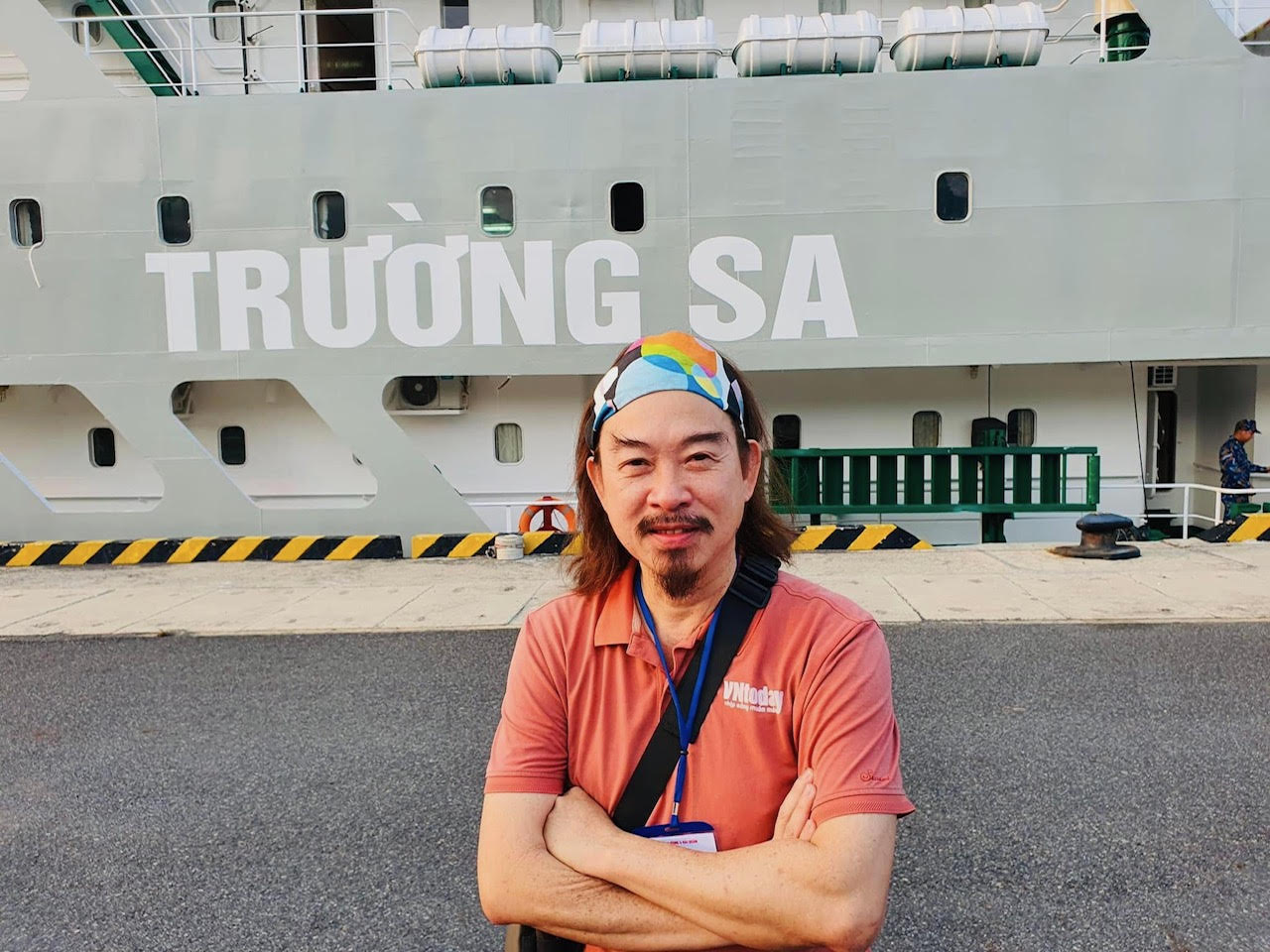 Nhà báo Việt kiều Trường Nguyễn trong một chuyến đi Trường Sa. Ảnh tác giả cung cấp.