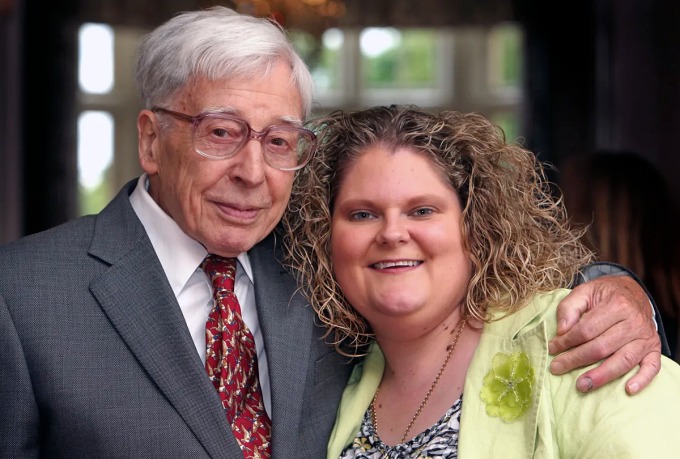 Louise chụp ảnh cùng Giáo sư Robert Edwards, nhà sinh vật học tiên phong cho phương pháp thụ tinh ống nghiệm. Ảnh: Sun