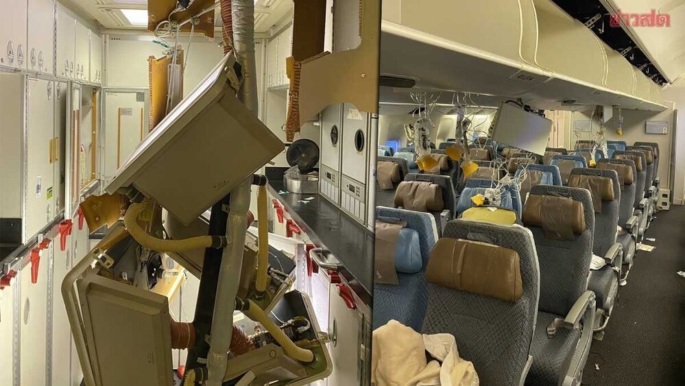 Cảnh tan hoang bên trong máy bay SQ321 sau sự cố nhiễu động. Ảnh: Standard