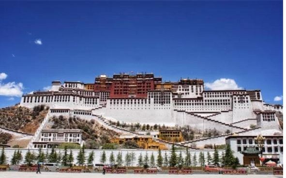 Cung điện Potala nằm ở trung tâm Lhasa, tọa lạc trên ngọn núi Đỏ ở trung tâm Lhasa ở độ cao hơn 3.700 mét, cũng là cung điện cổ cao nhất thế giới. Nó có diện tích hơn 360.000 mét vuông, cao 177,19 mét, bao gồm hai phần: Cung điện Đỏ và Nhà Trắng, Cung điện Đỏ ở giữa và Nhà Trắng chạy ngang qua hai cánh. Chúng có màu đỏ và trắng với các tòa nhà chồng lên nhau, đó là một tập hợp các cung điện, lâu đài, lăng mộ và đền thờ tráng lệ.