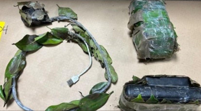 Máy thu hình và pin được ngụy trang với lá cây (Hình: Glendale Police Department)