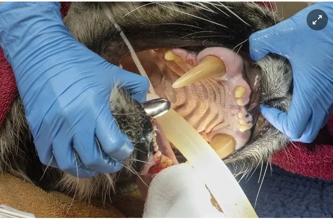Đội thú y của Sở thú Point Defiance - và một nha sĩ thú y cố vấn - nhổ răng cho con hổ Sumatra đực Sanjiv của vườn thú vào tháng 1. Ảnh: Seattle Times.