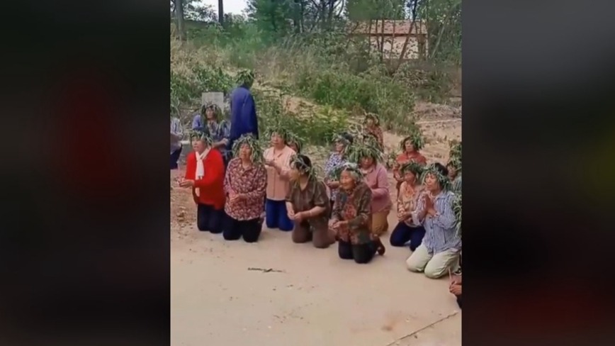 Theo một đoạn video được đăng tải trên mạng, tại một ngôi miếu Long Vương ở địa phương này, có một nhóm đông người đã tập trung lại để cùng cầu mưa. Trên đầu họ đội những chiếc vòng kết bằng cành liễu và đang chắp hai tay, quỳ xuống cầu xin Long Vương.