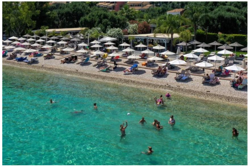 Du khách tắm biển tại đảo Corfu ở Hy Lạp năm 2022