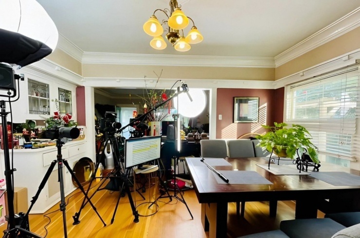 Nhà chính của Thúy Nga nằm ở phố Bolsa - nơi tập trung nhiều người Việt. Thúy Nga tậu cơ ngơi này với giá gần 1,2 triệu USD (khoảng 30 tỷ đồng) từ năm 2021 để đón con gái Nguyệt Cát, 13 tuổi, sang du học. Bên trong nhà được trang trí tone trắng với các mảng tường đỏ làm điểm nhấn.